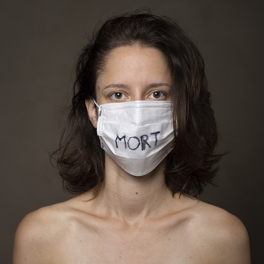 Les torses nus participent de cette sensation de fragilité face au virus et font de ces masques au centre de l’image des formes abstraites qui voilent les identités. Ils sont aussi le signe de l’étrange période de distanciation sociale que nous traversons puisque, jadis interdits dans l’espace public au nom de l’ordre républicain, ils sont devenus obligatoires en période de pandémie par respect de l’ordre sanitaire…