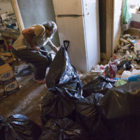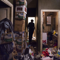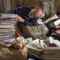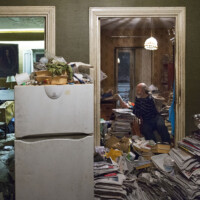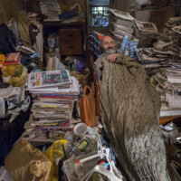 Pliouchkine syndrome, better known as “Diogenes syndrome or “compulsive accumulation”, is a inhomogeneous and complex disorder. The activity of accumulation, social withdrawal and the refusal of help are the main symptoms. Jean roams through town every night at the same time, following the same paths in search of what interests him the most; food to feed himself, books and newspapers to satisfy his need for knowledge. He also accumulates, in an excessive form, all sorts of objects, independently of their use and value. His lifestyle is original but not insane. He follows his own logic. Thus, in respect for the environment, he dries the food he collects in the bins, to reduce the volume and improve the waste incinerator’s productivity. Roughly once a year, for sanitary reasons, the town services make a cleaning society intervene. Jean therefore attempts to put aside all of his most valued findings. However, during the two day intervention, the entirety of the objects covering his apartment floor will again return to household waste. Furthermore, as soon as the next day arrives, Jean returns to towns with the same aims in mind, bringing baskets of food up to his apartment, newspapers and other unusual objects. *Pliouchkine is a character from Nikolaï’s novel, “Les ames mortes”. A Russian aristocrat, living in an impressively disorderly house, he crosses regions in search of all sorts of jumbles and accumulates his findings in his house.