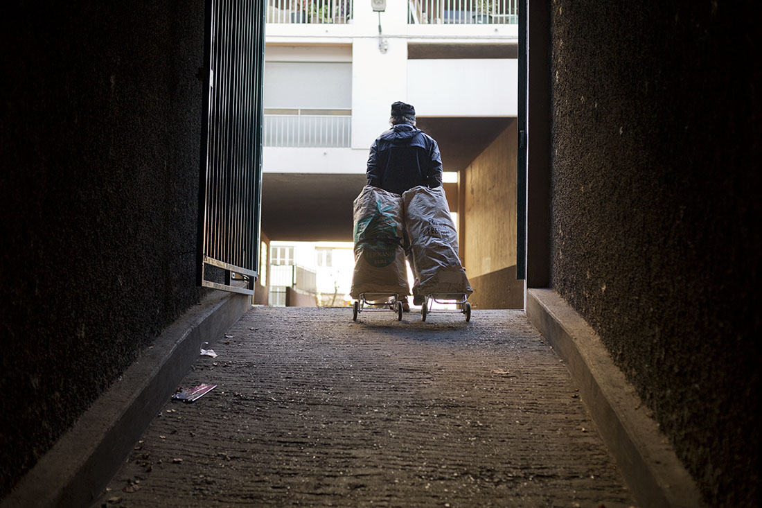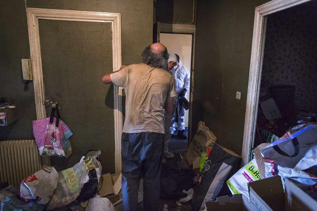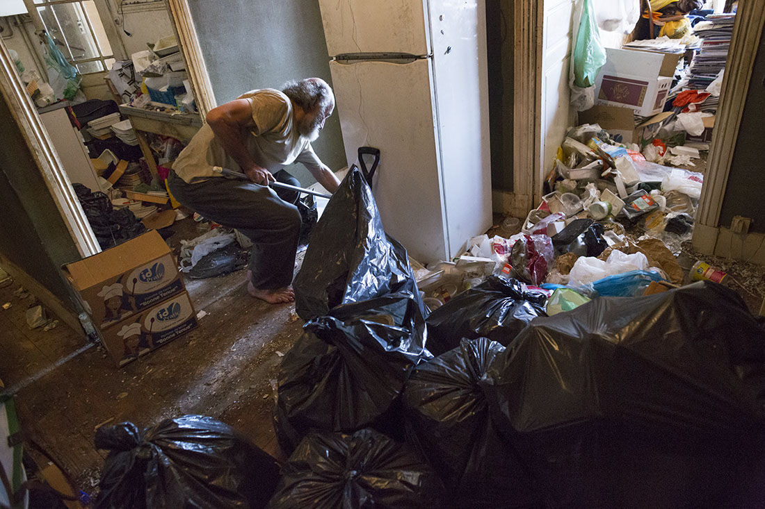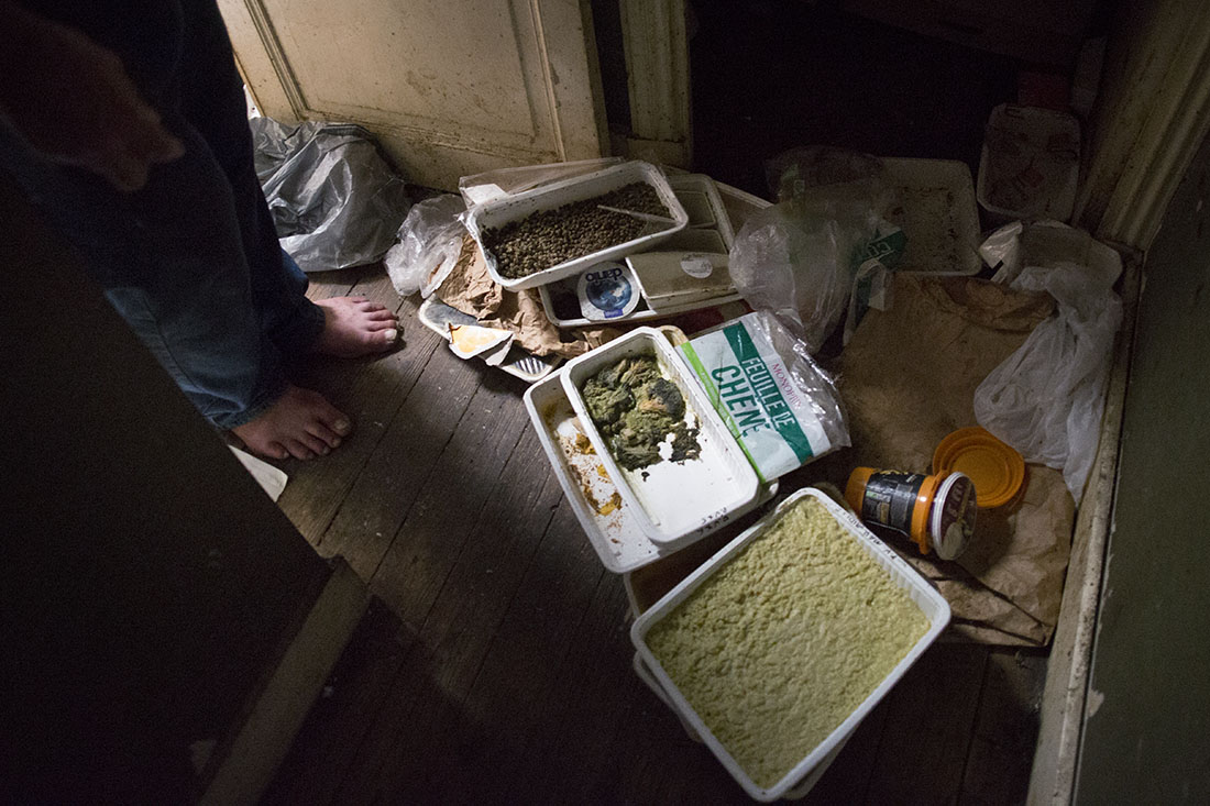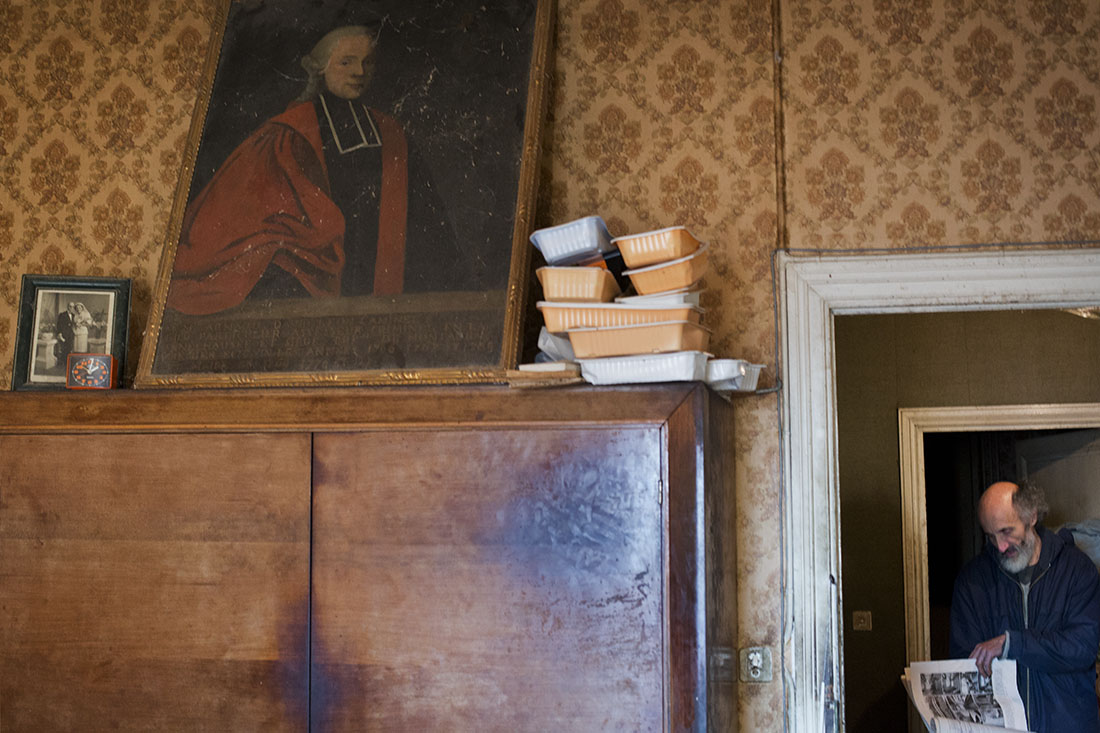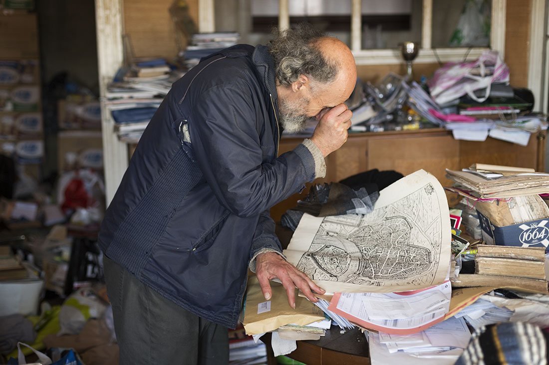Pliouchkine syndrome, better known as “Diogenes syndrome or “compulsive accumulation”, is a inhomogeneous and complex disorder. The activity of accumulation, social withdrawal and the refusal of help are the main symptoms. Jean roams through town every night at the same time, following the same paths in search of what interests him the most; food to feed himself, books and newspapers to satisfy his need for knowledge. He also accumulates, in an excessive form, all sorts of objects, independently of their use and value. His lifestyle is original but not insane. He follows his own logic. Thus, in respect for the environment, he dries the food he collects in the bins, to reduce the volume and improve the waste incinerator’s productivity. Roughly once a year, for sanitary reasons, the town services make a cleaning society intervene. Jean therefore attempts to put aside all of his most valued findings. However, during the two day intervention, the entirety of the objects covering his apartment floor will again return to household waste. Furthermore, as soon as the next day arrives, Jean returns to towns with the same aims in mind, bringing baskets of food up to his apartment, newspapers and other unusual objects. *Pliouchkine is a character from Nikolaï’s novel, “Les ames mortes”. A Russian aristocrat, living in an impressively disorderly house, he crosses regions in search of all sorts of jumbles and accumulates his findings in his house.