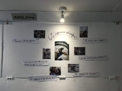 Les personnes qui ont franchi la porte du Bus ont eu également la possibilité de répondre à quelques questions que je leurs ai posées sur le thème de la différence. Comme un accompagnement à ces photographies, cette restitution sonore de 14 minutes témoigne de notre vision de « La différence » et de notre positionnement face aux autres.