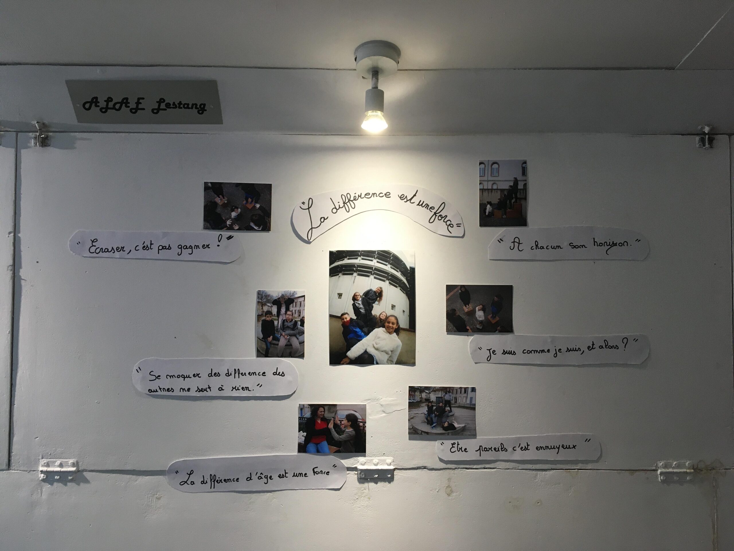 Pendant ces 15 jours de résidence de territoire, j’ai beaucoup échangé avec les enfants et les adultes qui sont venus découvrir ce travail exposé. Ce sujet a été le point de départ à une réflexion sur la normalité et la différence. J’ai invité les visiteurs à entrer dans un petit espace fermé au fond du Bus où ils ont fait face à un miroir. Chaque participant s’est alors placé face à son reflet, télécommande à la main pour déclencher l’appareil photo dissimulé dans le décors. Les photographies prises dans le miroir retranscrivent l’image que chaque sujet a souhaité montrer de lui-même. Ainsi, ces photographies, prises dans cet espace réduit par les « photographiés », nous offrent la possibilité d’observer la richesse de nos différences physiques mais aussi de nos attitudes.