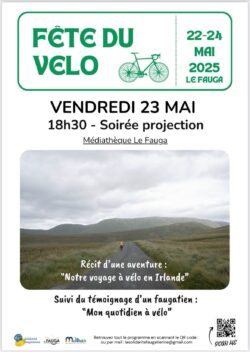 Vendredi 23 mai je présenterai mon voyage à vélo en Irlande. Une projection qui documente 1000 bornes au pays de la pluie en autonomie totale. Ce voyage en images sera suivi d’une discussion sur notre quotidien en vélo puis d’un apéro offert par la Mairie.
